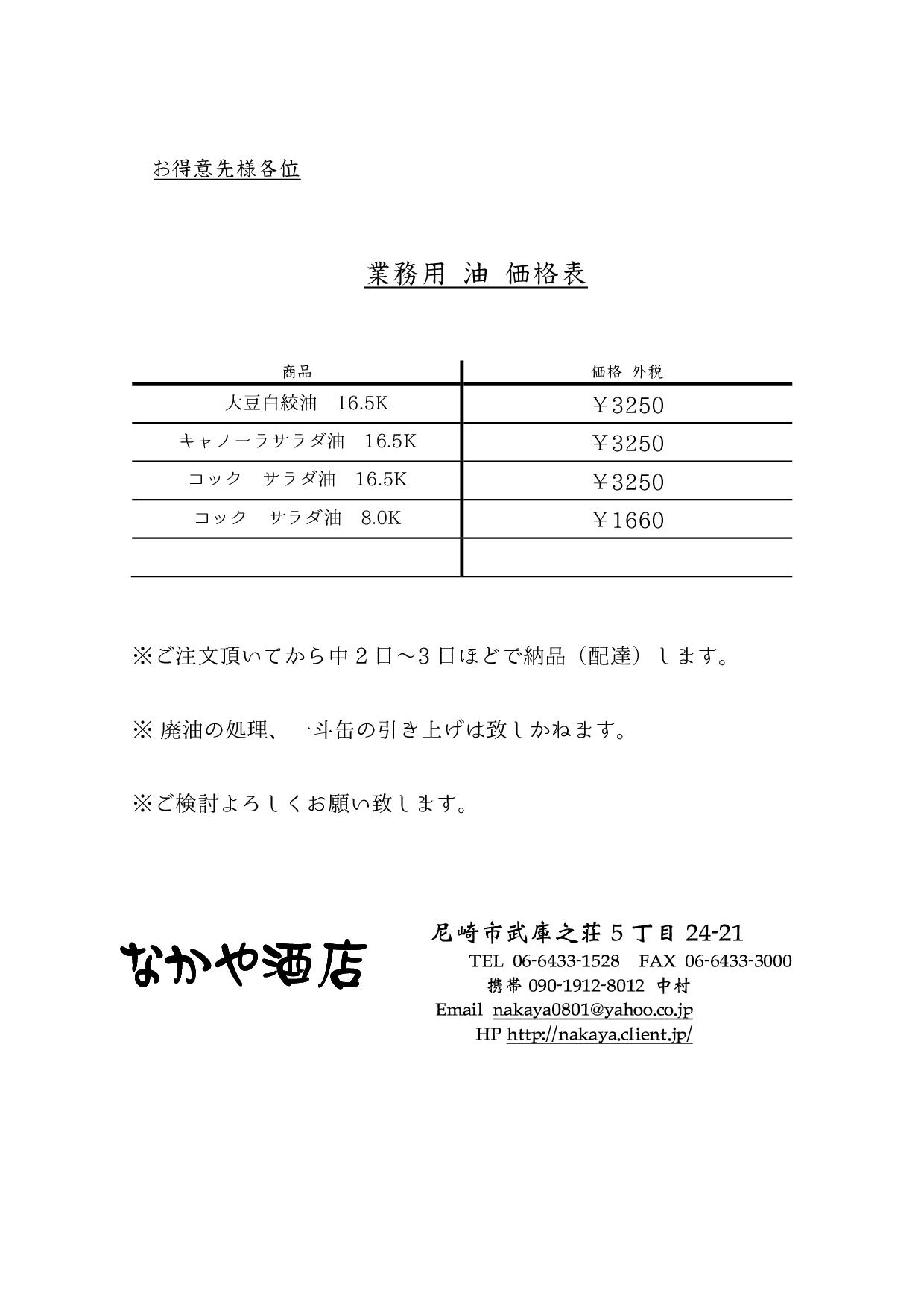業務用に対するお見積り依頼←価格対抗します!