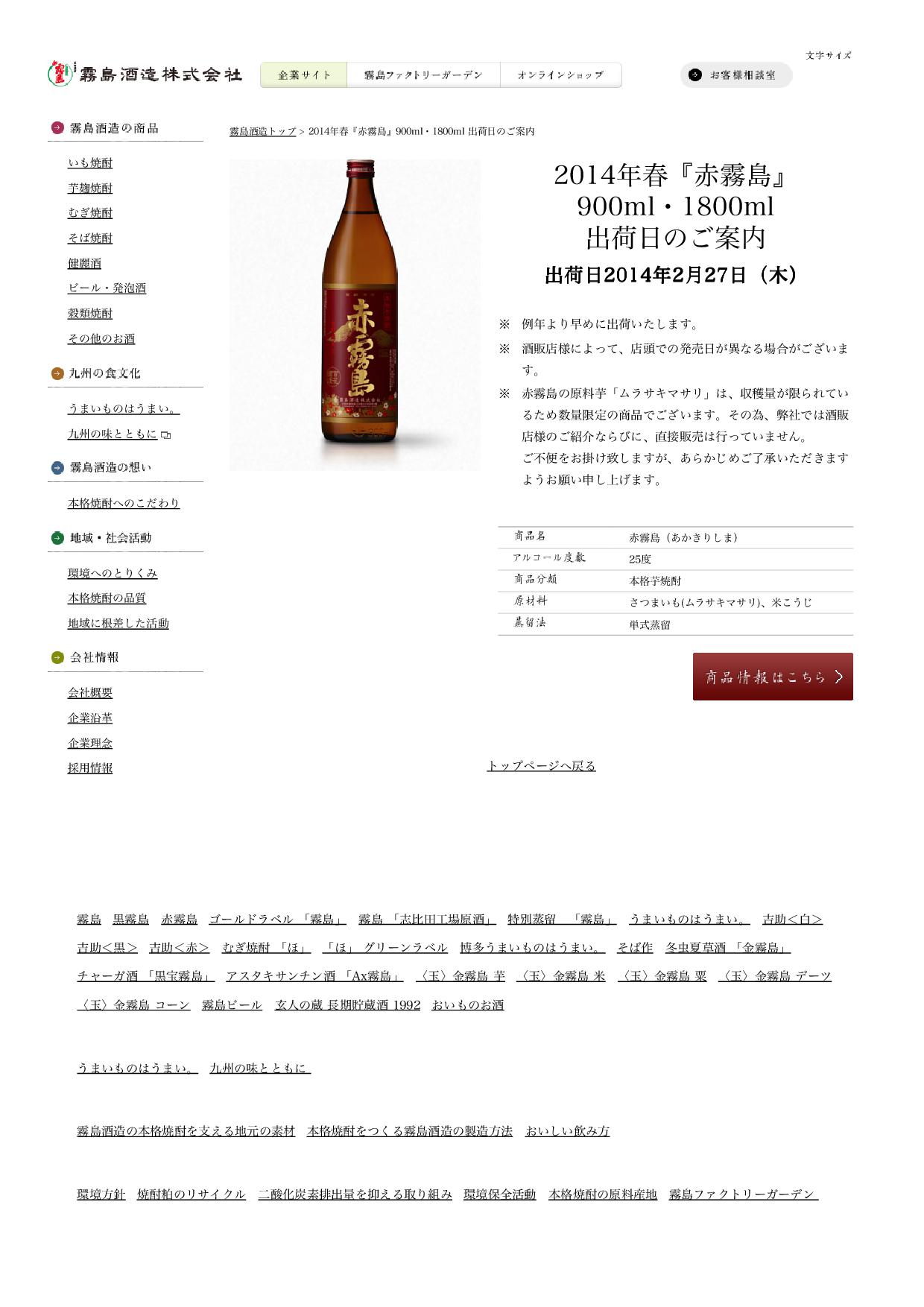 2月28日~ 2014赤霧島 発売開始となります。。