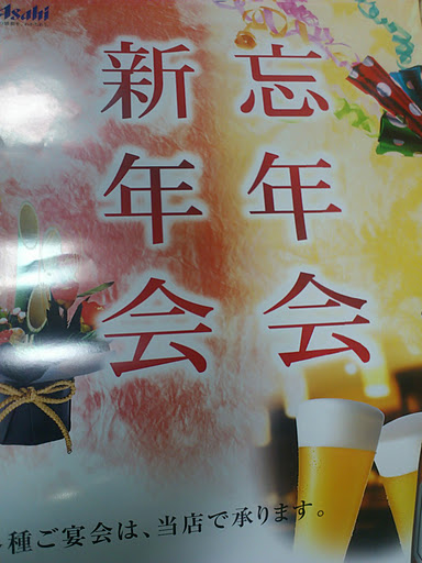 各ビールメーカーの「忘年会 新年会 承ります」のポスターありますので