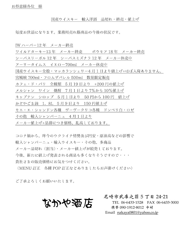 値上げ・欠品・割当販売 様々な商品に影響しております。