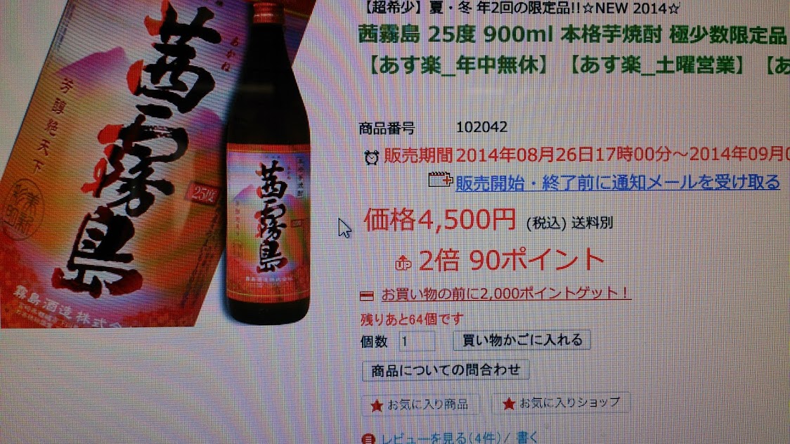 そんな大人気な癖して品薄の茜霧島は