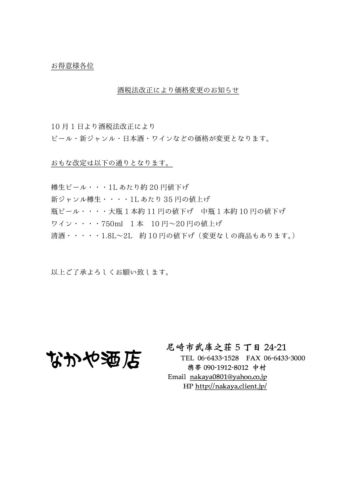 10月1日よりの酒税法改正のまとめです!!